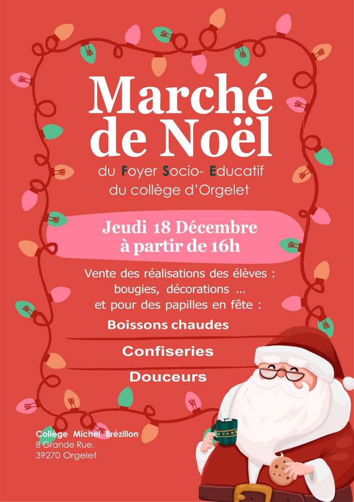 Le Foyer socio-éducatif organise un marché de Noël qui aura lieu le 18 décembre à partir de 16h dans le cloitre du collège